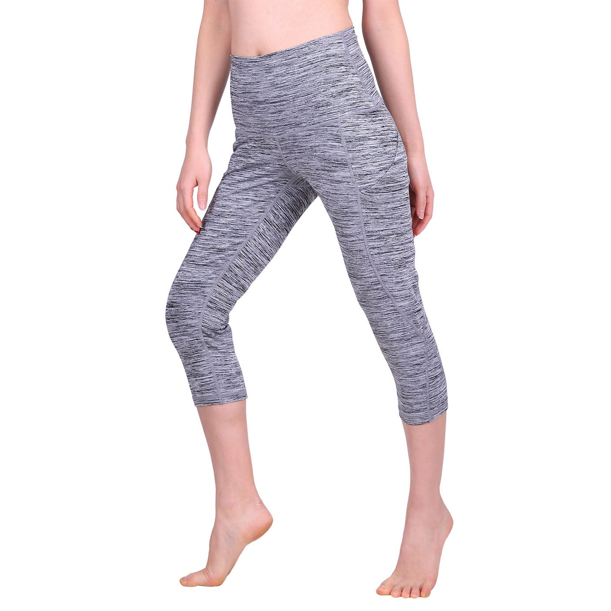 Hde Womens Capri Yoga Pants Fitted Stretch Leggings For Workouts Running Black Large