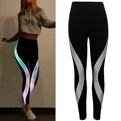 Hongxin Striped Printed Luminous Yoga Pants Women Sports Legging Reflective Gym Leggings Athletic Leggings Gym Woman Sportswear High Waist Tights