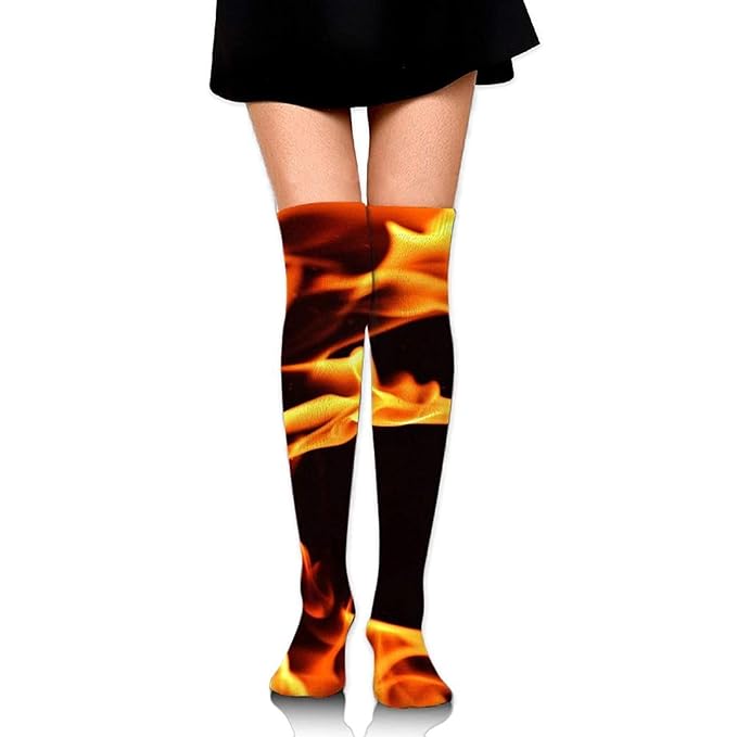 Women Thigh High Socks Over Knee Fire Flame Extra Long Tube