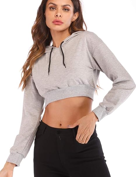 Agmibrelr Womens Workout Drawstring Crop Tops Hoodie Sweatshirt S 2xl