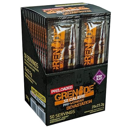 Grenade 50 Calibre Pre Workout Devastation Sachets Berry Blast 50 Servings 25 Sachets 2 Servings Per Sachet