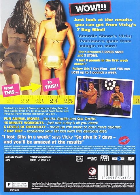 You can find the best choices of food and workout in this 7 day slim dvd which is also available on the amazon. Will require a region 2 or region free dvd player in order to playstrongpp just look at the results you can get from vickys 7 day slim. Just look at the results you can get from vickys 7 day slim geordie shores vicky pattisons gone from mingin to mint.