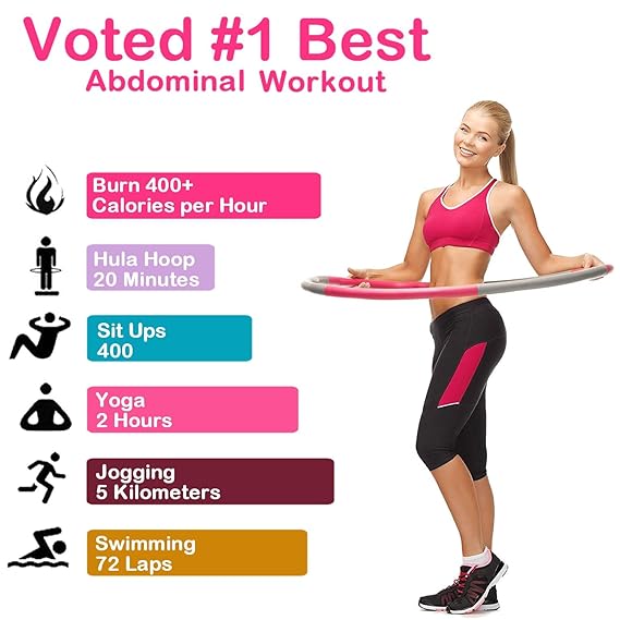Twb Smart Fat Burning Weighted Hula Hoop For Adults Ab Sculpting Exercise Adjustable Design With 8 Detachable Sections Bonus Tape Measure Free