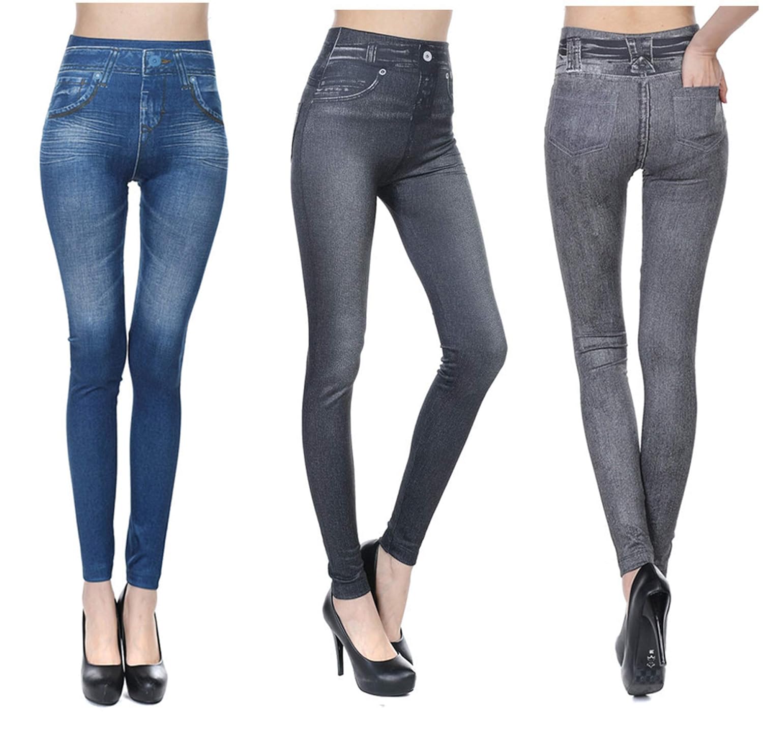 Its a hyperreal printed fabric with the look of denim and the benefits. Prolific health womens jean look jeggings tights slimming many colors spandex leggings pants capri s xxxl.